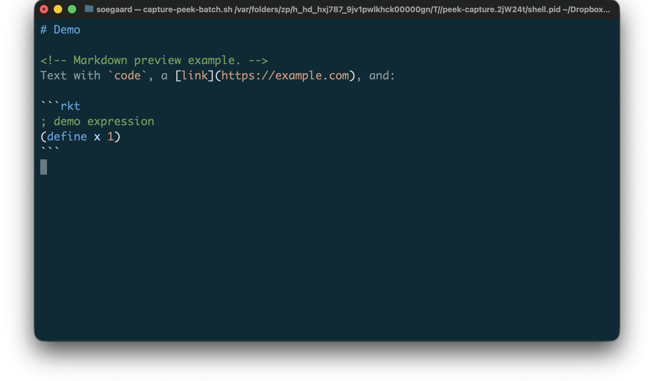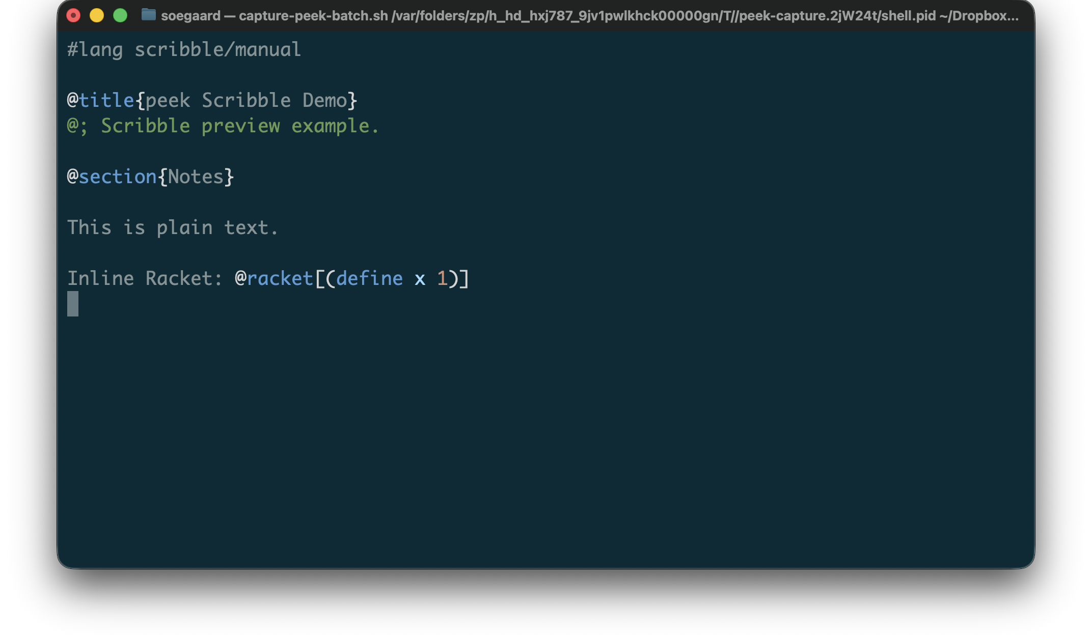 The command-line tool is backed by a small library in (lib "peek/preview.rkt").