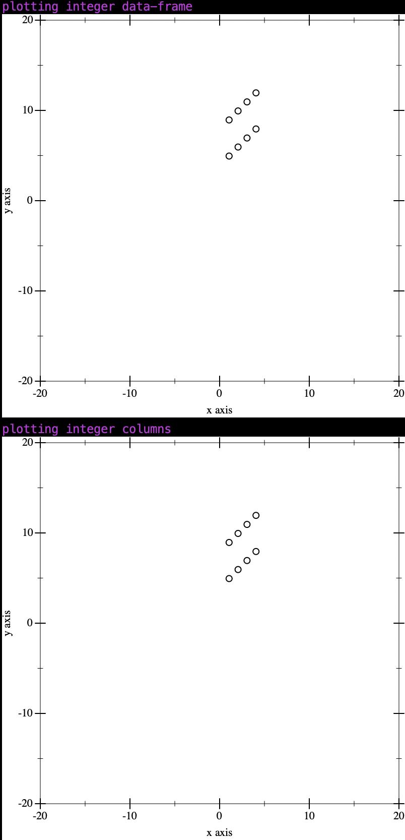; create new data-frame-mix from columns (define data-frame-mix (new-data-frame columns-mix)) ; write data-frame-mix to stdout (data-data-frame-write-delim data-frame-mix)