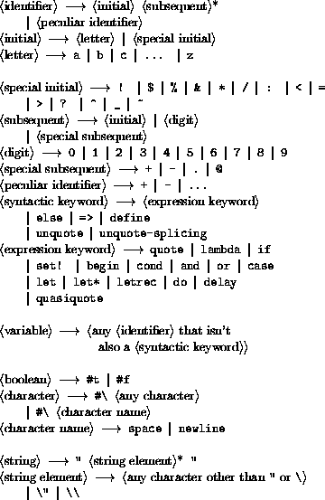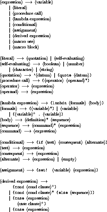 This section provides a formal syntax for Scheme written in an extended BNF.