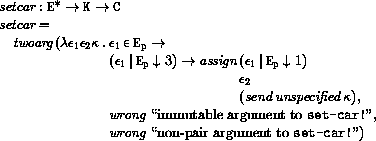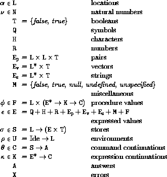 This section provides a formal denotational semantics for the primitive expressions of Scheme and selected built-in procedures. The concepts and notation used here are described in [29]; the notation is summarized below:
