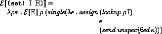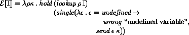 where I* is the sequence of variables defined in P, P' is the sequence of expressions obtained by replacing every definition in P by an assignment, <undefined> is an expression that evaluates to undefined, and is the semantic function that assigns meaning to expressions.