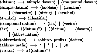 <Datum> is what the read procedure (section 6.6.2) successfully parses. Note that any string that parses as an <expression> will also parse as a <datum>.